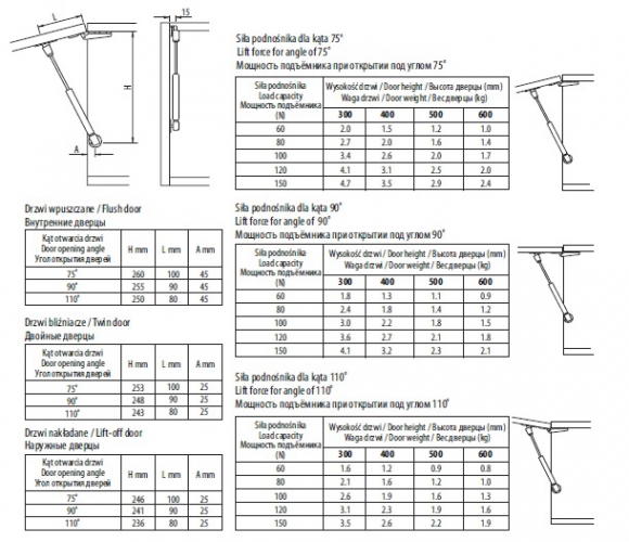 Постоянная складская программа! Все мебельные амортизаторы GTV, без проблем устанавливаются на все типы дверей и петель - накладные, 1/2 и внутренние и три угла открывания - 75 градусов, 90 градусов, 110 градусов.