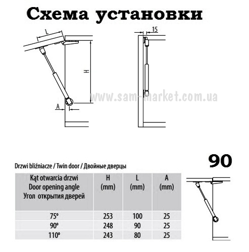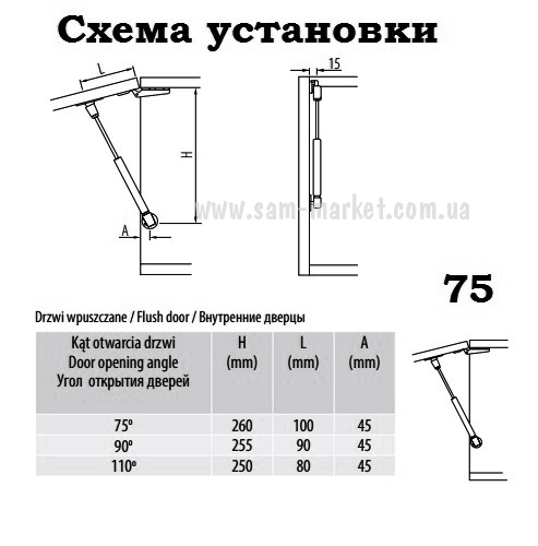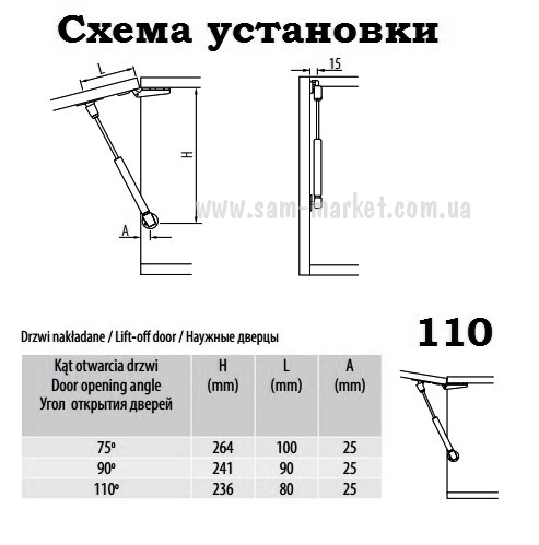 Постоянная складская программа! Все мебельные амортизаторы GTV, без проблем устанавливаются на все типы дверей и петель - накладные, 1/2 и внутренние и три угла открывания - 75 градусов, 90 градусов, 110 градусов.