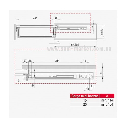 Карго 200 мм правое крепление с доводчиком хром/графит MAXIMA SILVA MINI REJS (23474)