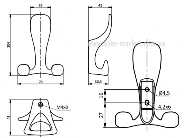 Крючок мебельный WZ-TOLED-A0-06 инокс GTV (21437)