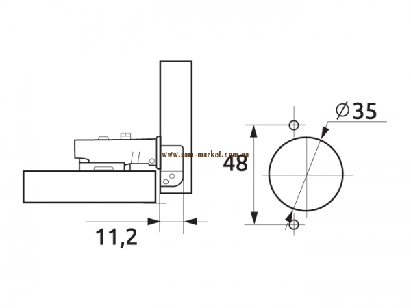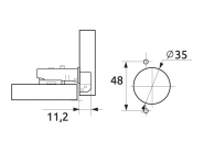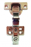 Петля мебельная с доводчиком. Ответная планка Clip-on под саморез, крестообразная, усиленная. Встроенная регулировка глубины с помощью эксцентрика. Встроенная регулировка по высоте с помощью эксцентрика.