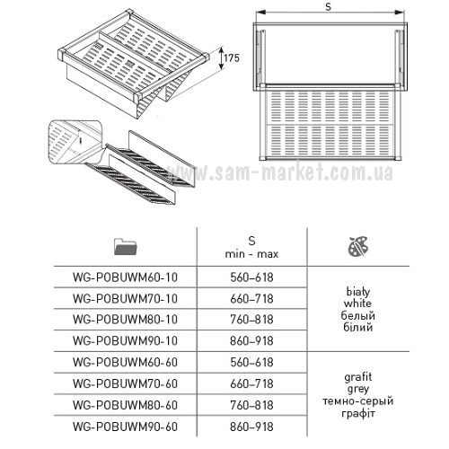 Полка для обуви 900 мм перфорированная графит направл. скрытого монтажа с довод. WG-POBUWM90-60 GTV (22996)