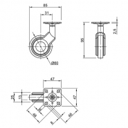 Ролик мебельный с площадкой d= 60 мм R 10020 пластиковый хром / черный + белый FERRO FIORI (21702)