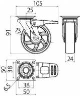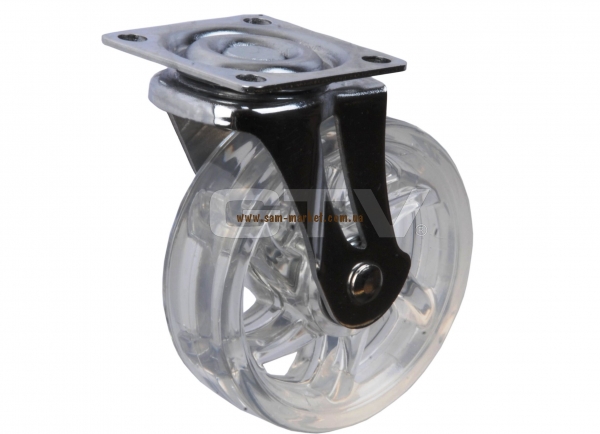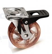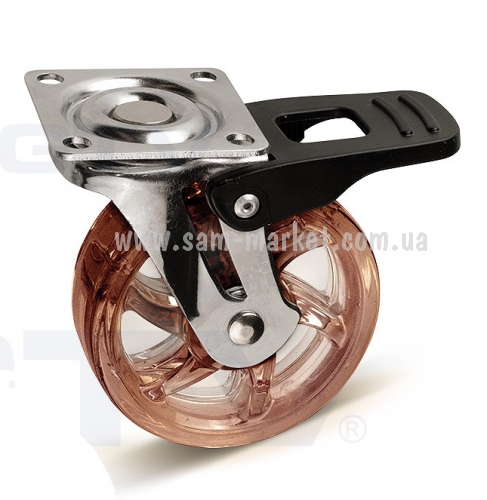 Ролик мебельный с площадкой d=75 мм резиновый со стопором прозрачный KM-BH75MM-00 GTV (16099)