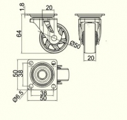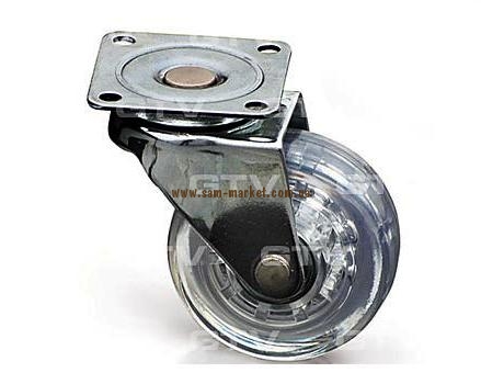 Ролик мебельный с площадкой d=50 мм резиновый со стопором прозрачный КМ-АH50ММ-00 GTV (08633)