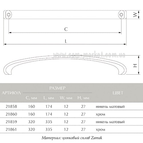 Ручка мебельная M 12967.320 никель матовый COSMA (18267) - (717.41 грн.)