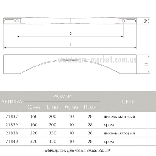 Ручка мебельная M 12943.320 никель COSMA (18193) - (821.27 грн.)
