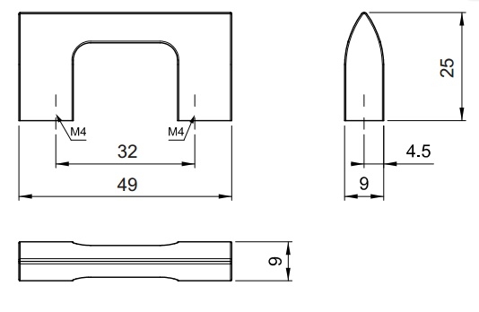 Габаритный размер ручки: 49 мм