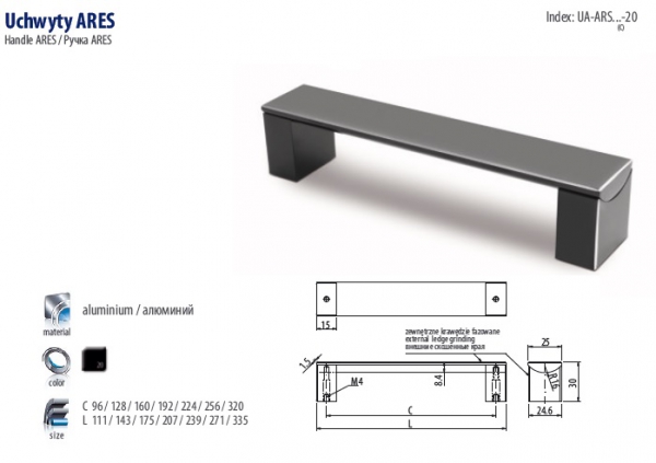 Ручка мебельная UA-ARS224-20 черный GTV (00790) - (422.22 грн.)