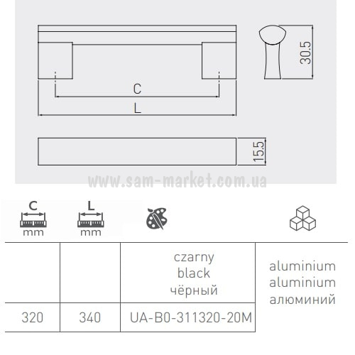 Ручка мебельная UA-B-311-320-20 черный анодированный GTV (25488) - (237.04 грн.)