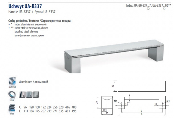Ручка мебельная UA-BO-337-256-05 алюммний GTV (00931)