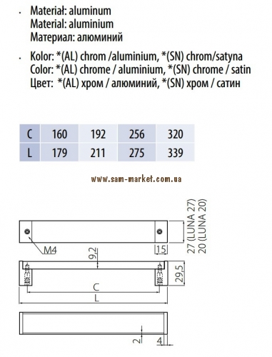 Ручка мебельная UA-LUNA20-256-AL хром / алюминий GTV (15156) - (192.25 грн.)