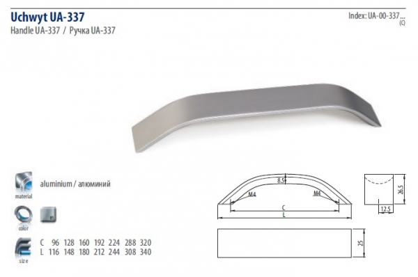 Ручка мебельная UA-OO-337-224-05 алюминий GTV (01753)