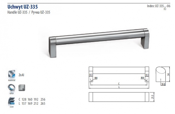 Ручка мебельная UZ-335-192-06 инокс GTV (00988) - (160.25 грн.)