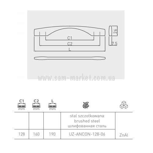 Ручка мебельная UZ-ANCONA-192-06 инокс GTV (25097) - (208.99 грн.)