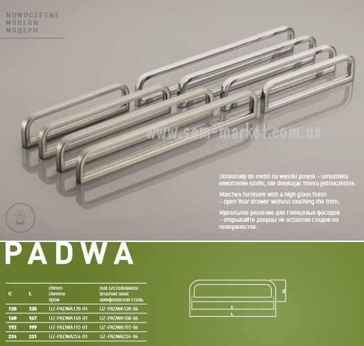 Ручка мебельная UZ-PADWA-224-06 инокс GTV (23341)