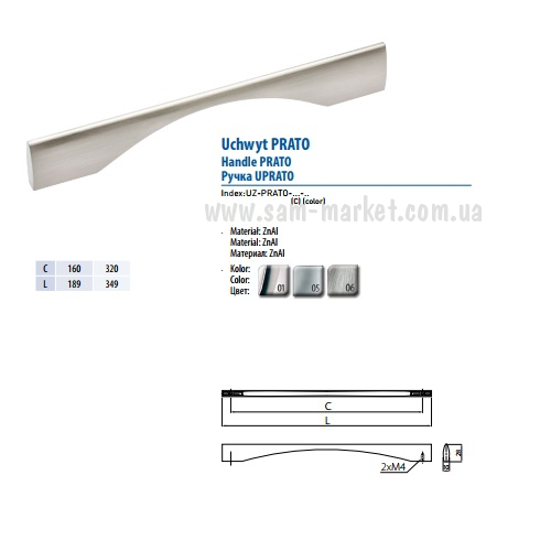 Ручка мебельная UZ-PRATO-160-06 инокс GTV (17508)