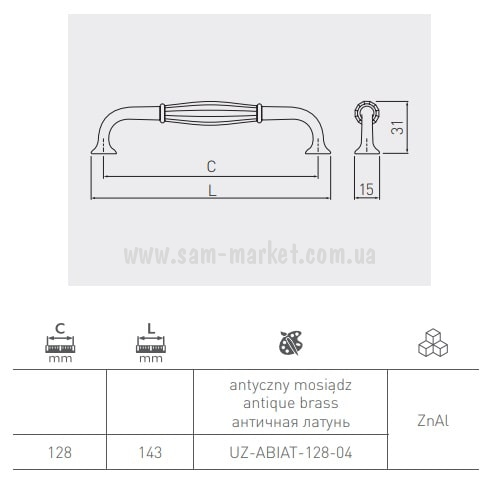 Ручка мебельнаяUZ-ABIAT-128-04 бронза GTV (25376)