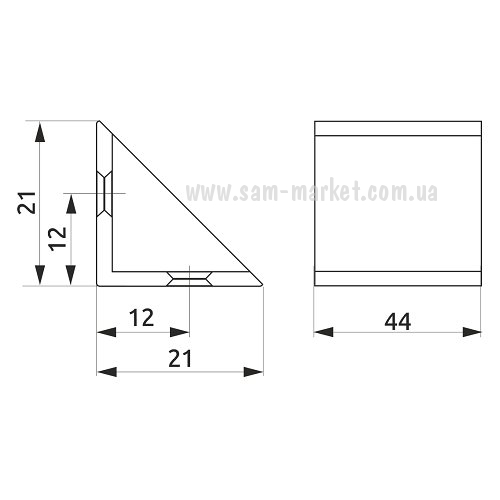 Уголок двойной 44х21х21 пластиковый GIFF белый (23430)